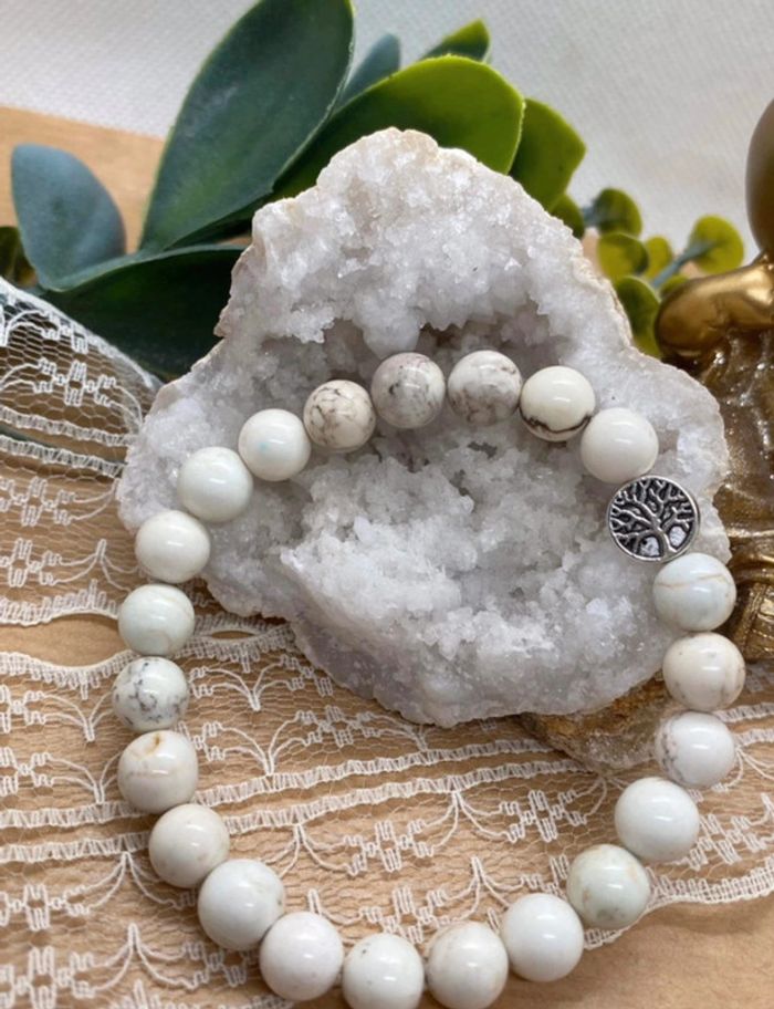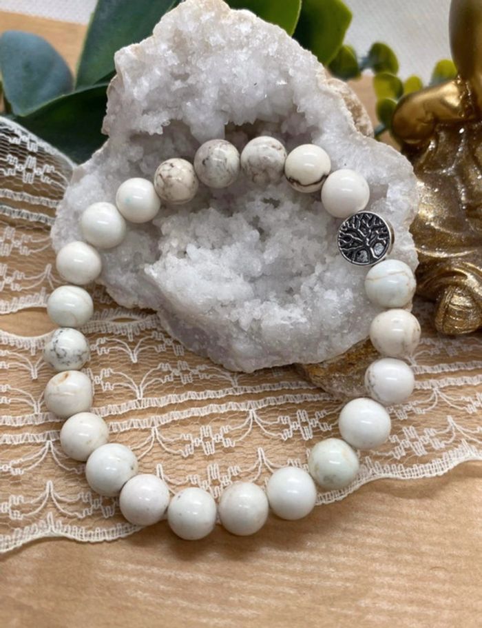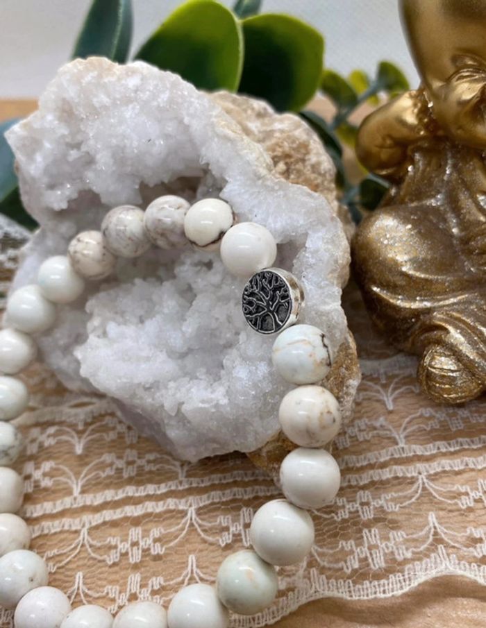 Bracelet magnésite et arbre de vie 18,5 cm , lithothérapie - photo numéro 1