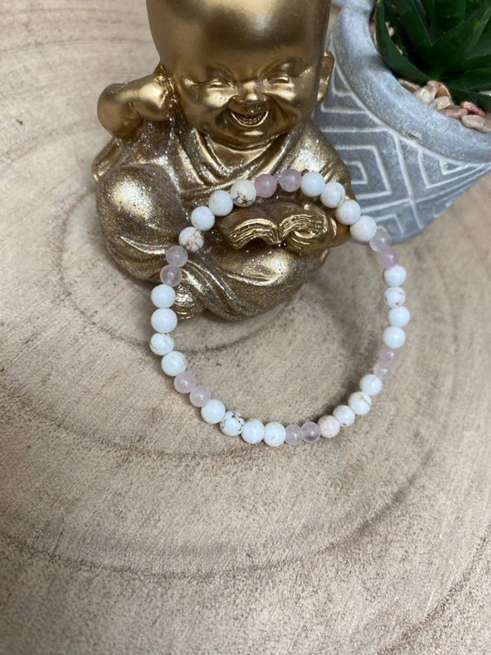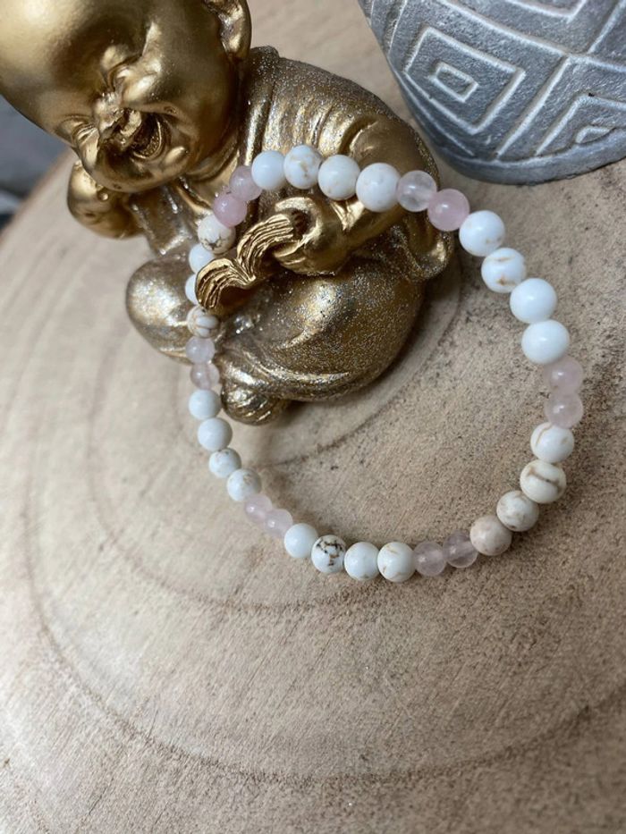 Bracelet très fin quartz rose et magnésite 16,5 cm , lithothérapie - photo numéro 3