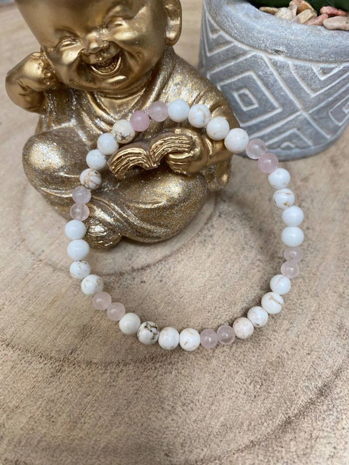 Bracelet très fin quartz rose et magnésite 16,5 cm , lithothérapie - photo numéro 1