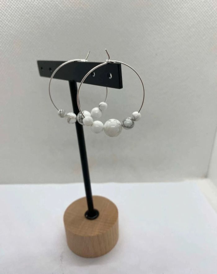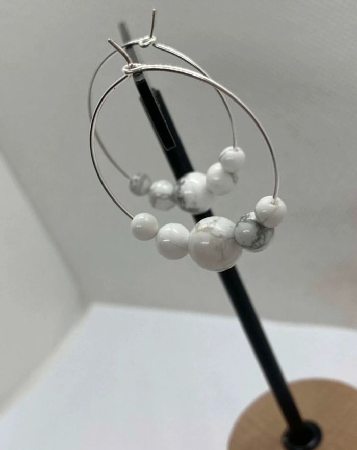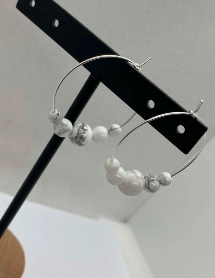 Boucles d’oreilles créoles howlite , inoxydables , lithothérapie - photo numéro 5