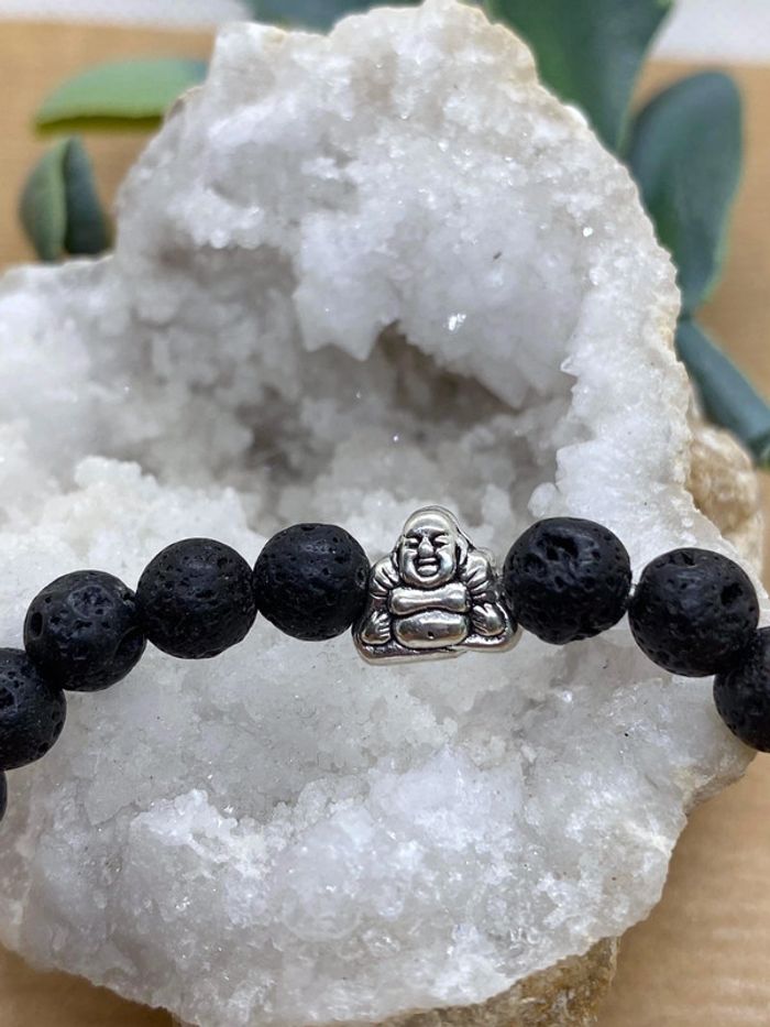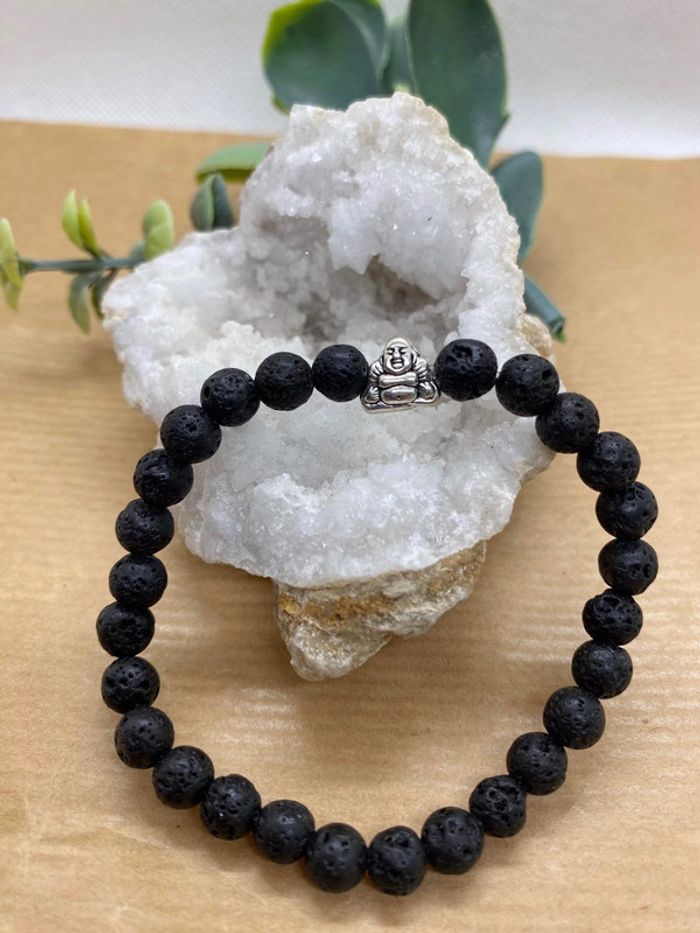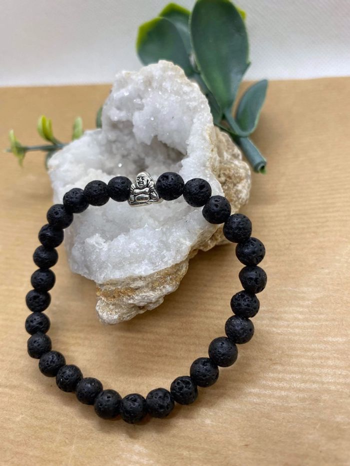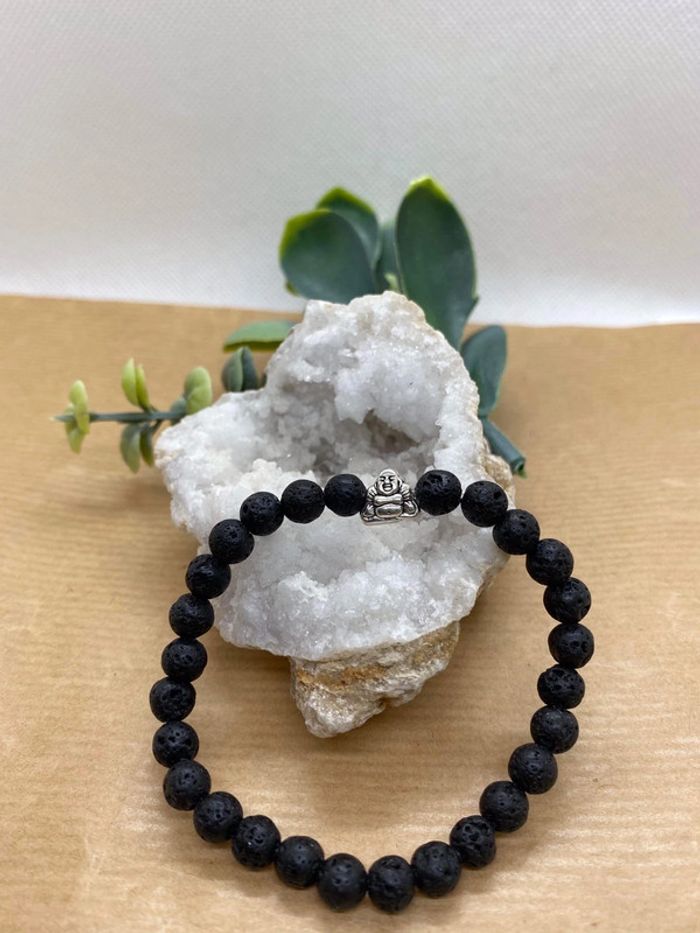 Bracelet pierre de lave et bouddha , lithothérapie - photo numéro 1