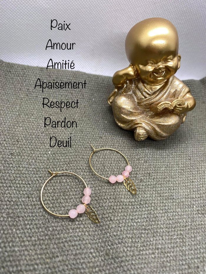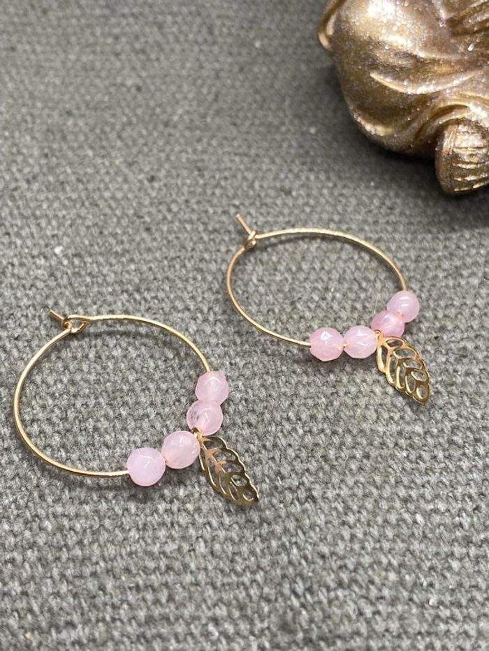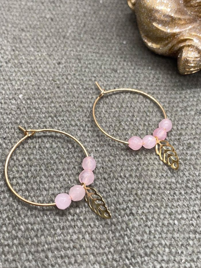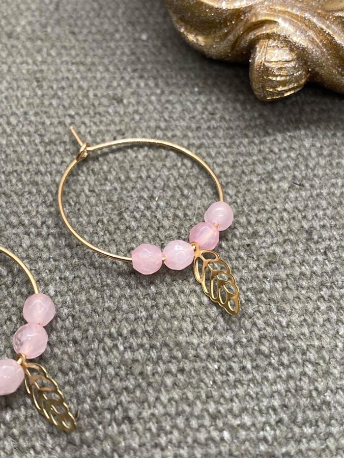 Très jolies créoles en acier inoxydable avec perles naturelles de quartz rose en 4 mm et plumes Quartz rose La pierre quartz rose est une pierre porteuse de paix, d’amour et d’amitié. Elle aide ceux qui la portent à pardonner, mais aussi à respecter, aussi bien eux-mêmes qu’autrui. Elle accompagne les personnes en état de choc et favorise la rapidité dans la cicatrisation, qu’elle soit physique ou morale. Elle est reconnue pour ses vertus apaisantes,
