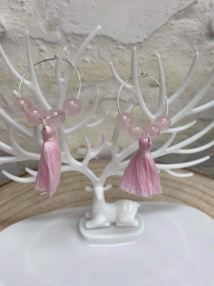 Créoles en quartz rose , lithothérapie - photo numéro 1