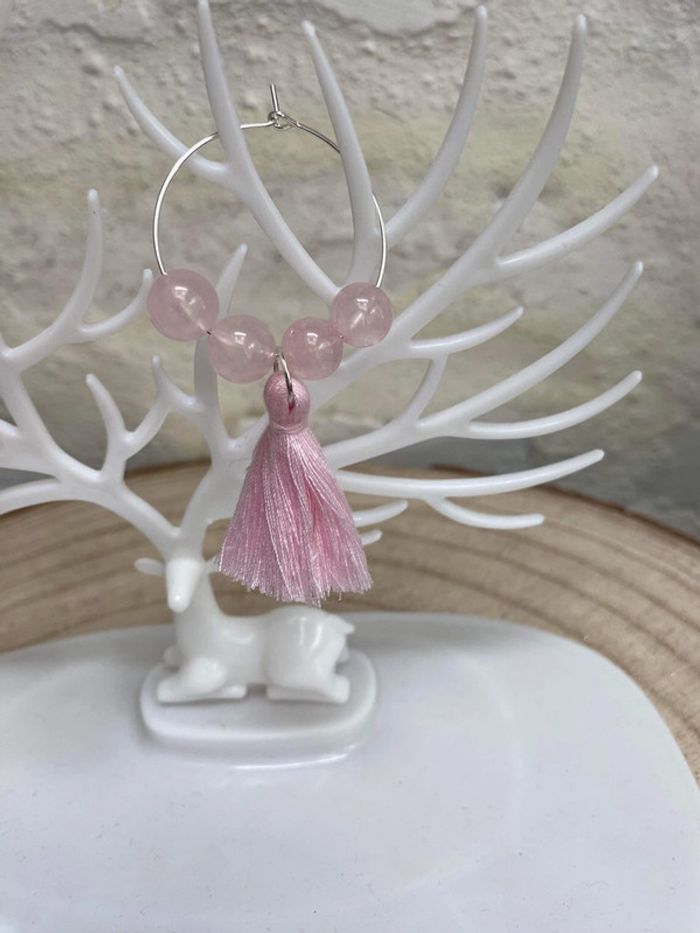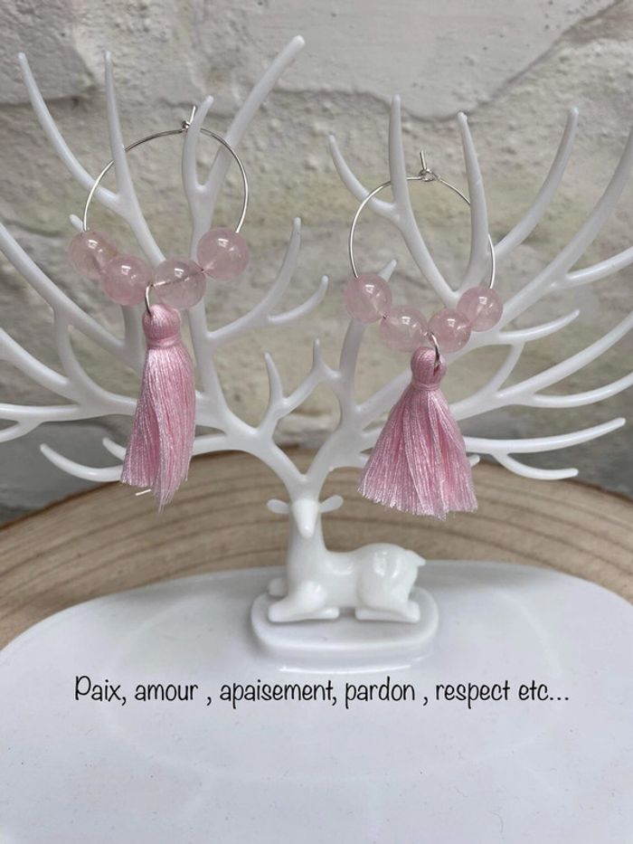 Créoles en quartz rose , lithothérapie - photo numéro 2