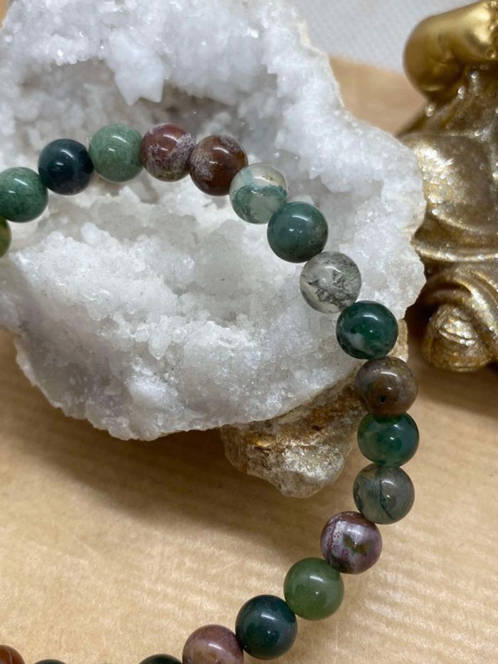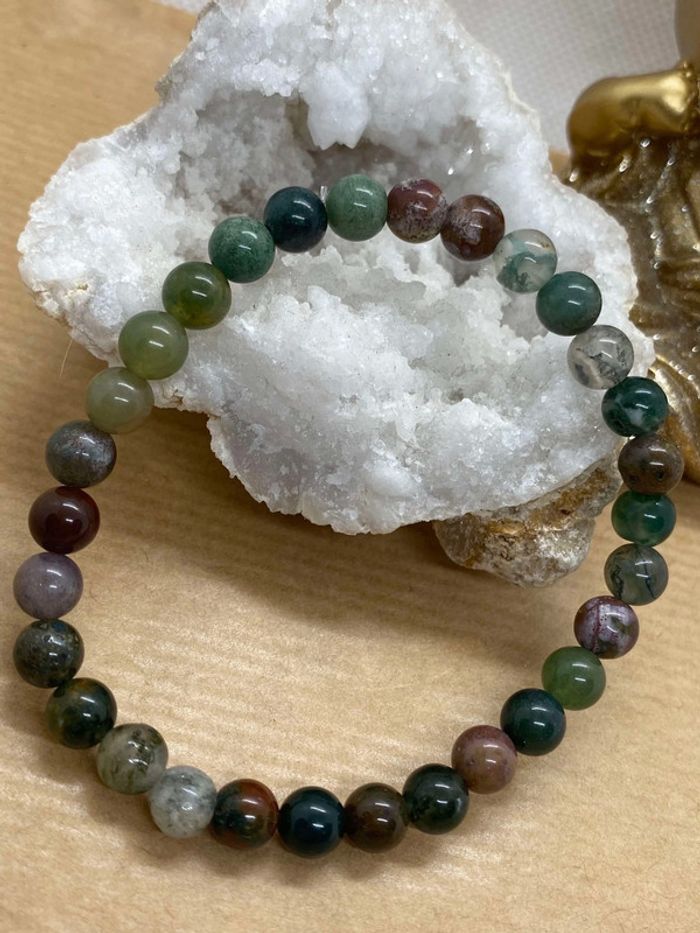 Très joli bracelet de litho en pierres naturelles d’agate indienne Taille 19 cm , perles de 6 mm Agate indienne Bienfaits au niveau physiologique Sur le plan physiologique, l’agate indienne permet d’atténuer les douleurs de tous types. Les malades qui la portent bénéficient d’un puissant regain d’énergie et de courage pour faire face à leurs maux. En outre, l’agate indienne aide à guérir de nombreuses pathologies en lien avec le système lymphatique et intestinal, de même que les problèmes dermatologiques, oculaires et pulmonaires. Bienfaits au niveau psychique En lithothérapie, l’agate indienne est généralement utilisée pour rééquilibrer l’énergie d’un patient. Cette réharmonisation permet la dissipation des agitations mentales telles que la colère et des ondes négatives. Cette pierre permet à son porteur de gagner davantage de confiance en lui-même et en ses capacités. Apaisant son anxiété, elle lui apporte la quiétude. Elle s’avère également très efficace pour lutter contre les problèmes de concentration et elle favorise le raisonnement intellectuel. 18 #agateindienne #lithothérapie #bracelet