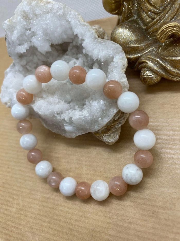 Bracelet pierre de lune et pierre de soleil 17,5 cm , lithothérapie - photo numéro 3