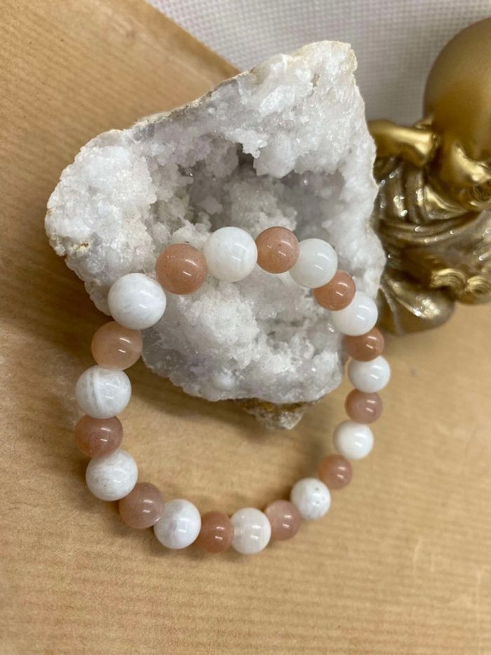 Bracelet pierre de lune et pierre de soleil 17,5 cm , lithothérapie - photo numéro 1