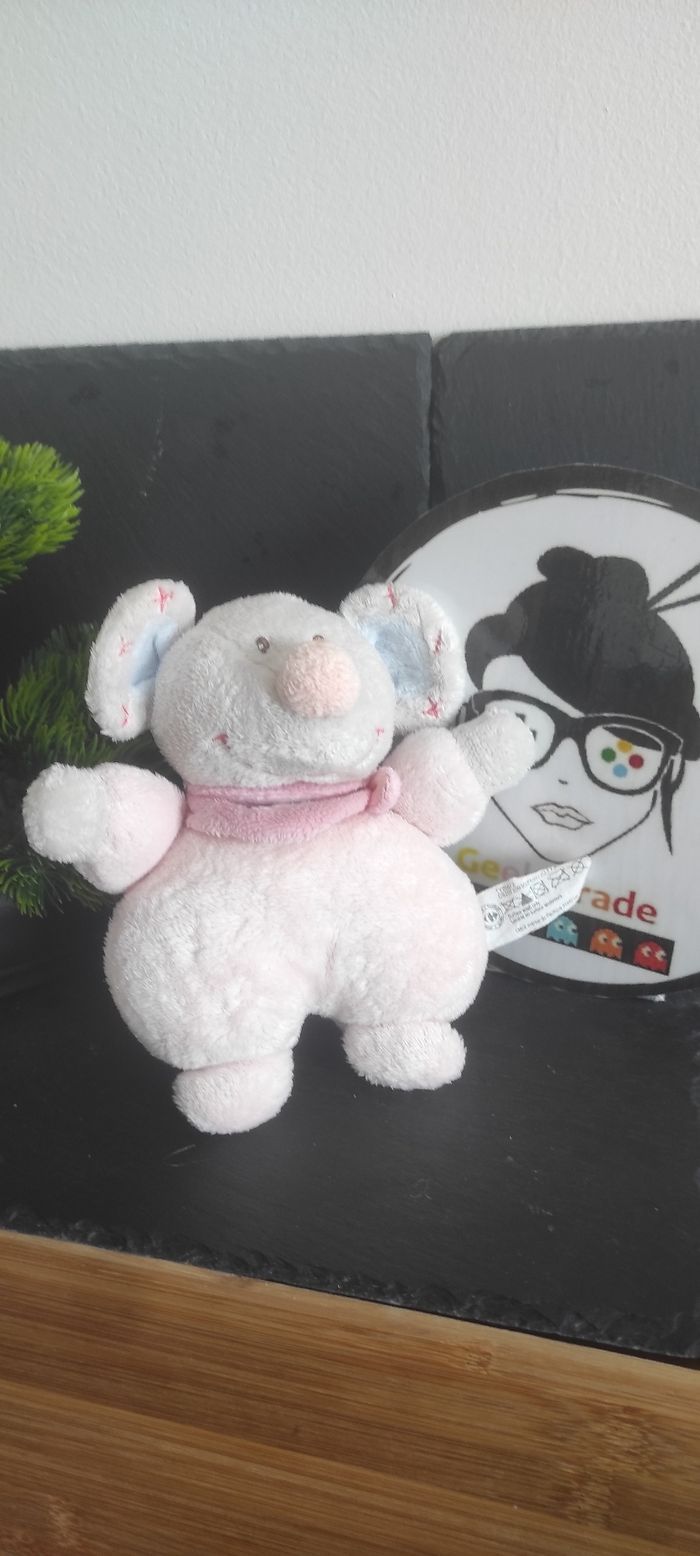 Peluche doudou souris rose gris bleu Carrefour TY20512 foulard bandana grelot