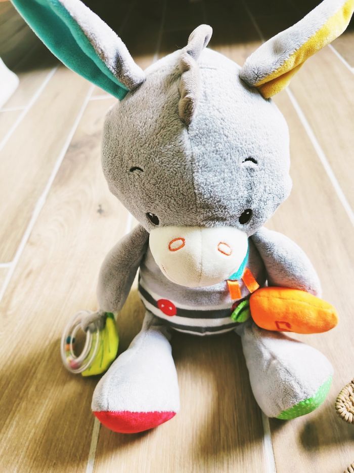 🐴Peluche doudou sensorielle multi activités Ane Titus marque Oxybul 🎀Convient dès l'âge de 12 mois 🎀Lavable en machine 🎀Avec diverses activités cette jolie peluche permettra d'éveiller Les differents sens de bébé : ✨Un hochet et anneau de dentition ✨Un miroir, papier bruissant ✨Pattes avec texture différentes 😕La petite carotte ne fait plus de bruit ❇️N'hésitez pas à créer un lot pour économiser sur les frais de port❇️ Premier âge, Jouet bébé, Jouet d'activité, Jouet ludique, Jouet eveil, Mémorisation, Memoire, aptitude, motricité, jeu Adresse, Montessori, jeu bois, Jouet bois, Jouet vintage, Jeu adresse, jeu apprentissage, dextérité, jeu sensorielle, jeu educatif, activités et Jouet pour bébé, trier empiler, encastrer, jeux et jouets