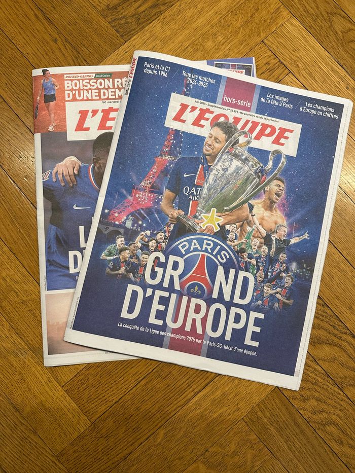 Lot Journal L’Équipe Hors-série Paris Grand d’Europe - Ligue des Champions 💙❤️ + numéro du mercredi 4 juin 2025. Super état, deux lots disponibles ! 📦