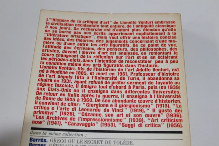 Histoire de la critique d'art Lionello Venturi Lu une fois #ellena50livres #livre