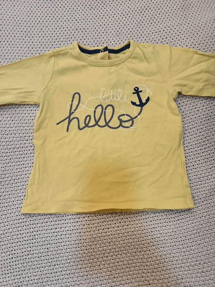 T-shirt manches longues jaune clair ancre marine 18 mois #coxynhell18moisgarçon