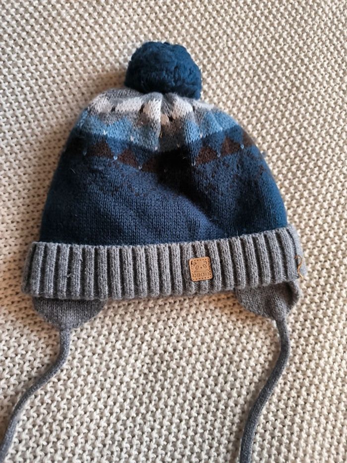 Bonnet hiver Okaïdi bleu gris 12 mois #coxynhell12moisgarçon