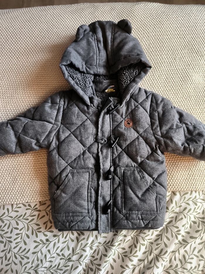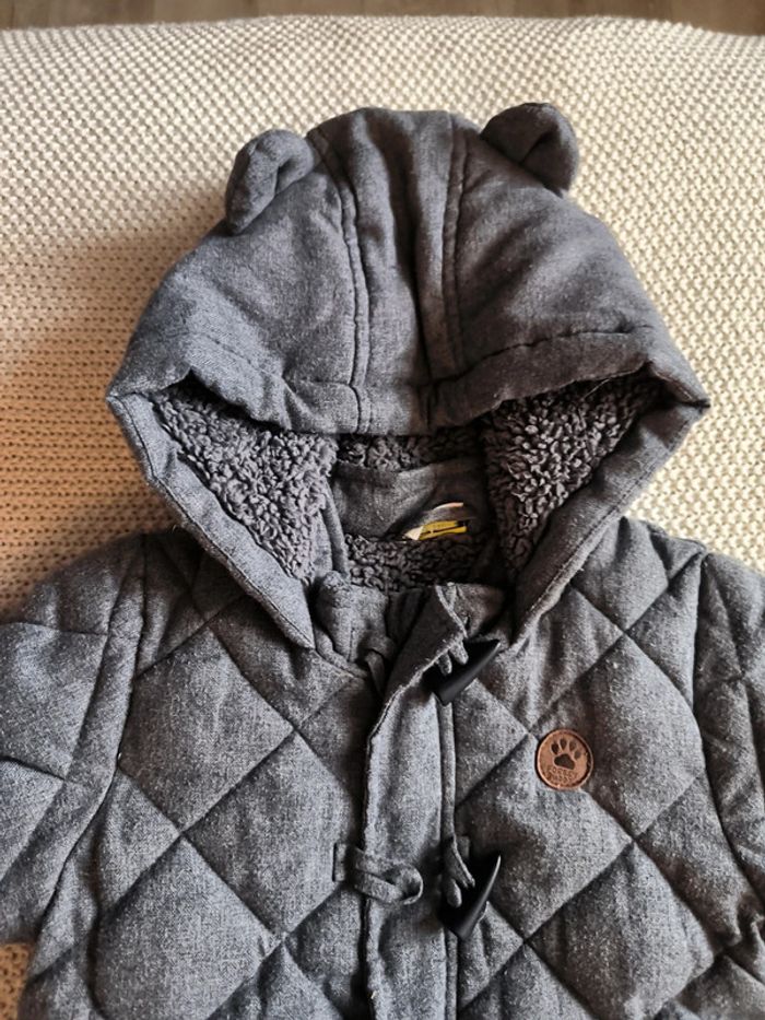 Manteau chaud hiver doublure en doudou tape à l'oeil 12 mois gris foncé capuche oreille ours #coxynhell12moisgarçon