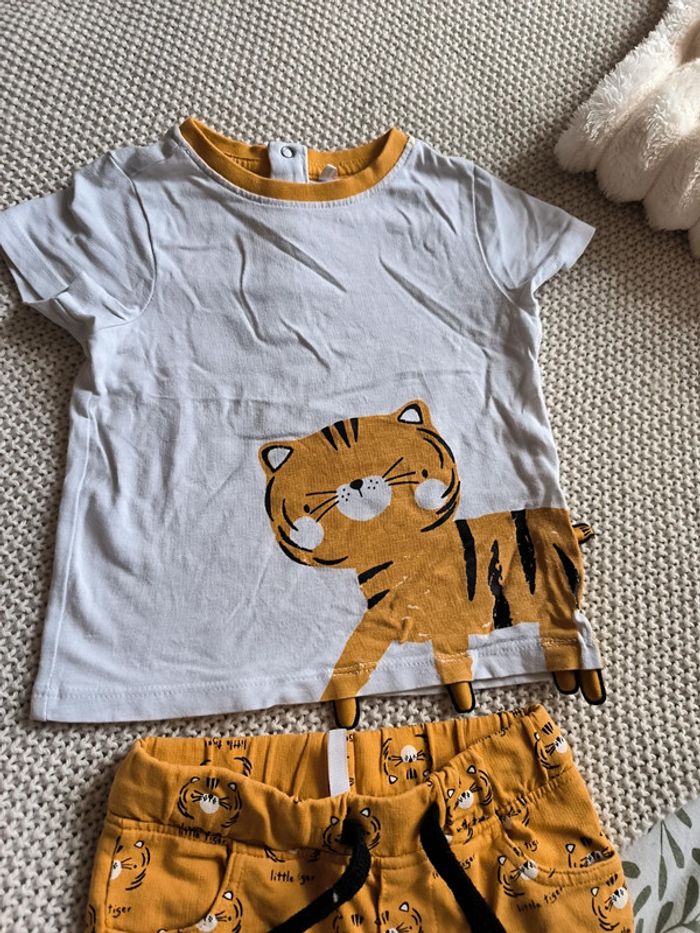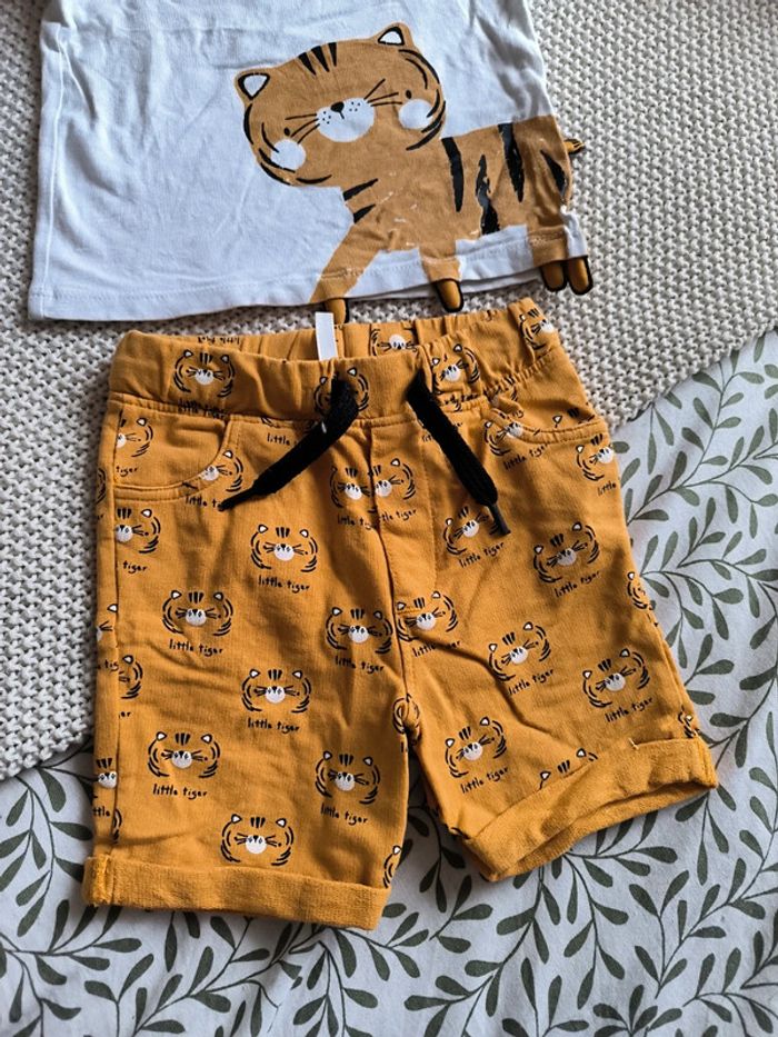 Ensemble été t-shirt manches courtes bermuda coton motif tigre moutarde blanc orchestra 12 mois #coxynhell12moisgarçon