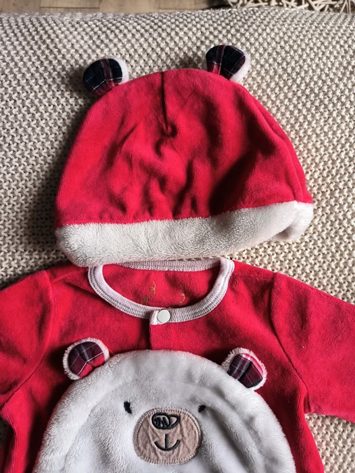 Si jamais velours doudou rouge blanc motif ourson Noël collection sergent major avec bonnet assorti 9 mois #coxynhell9moisgarçon