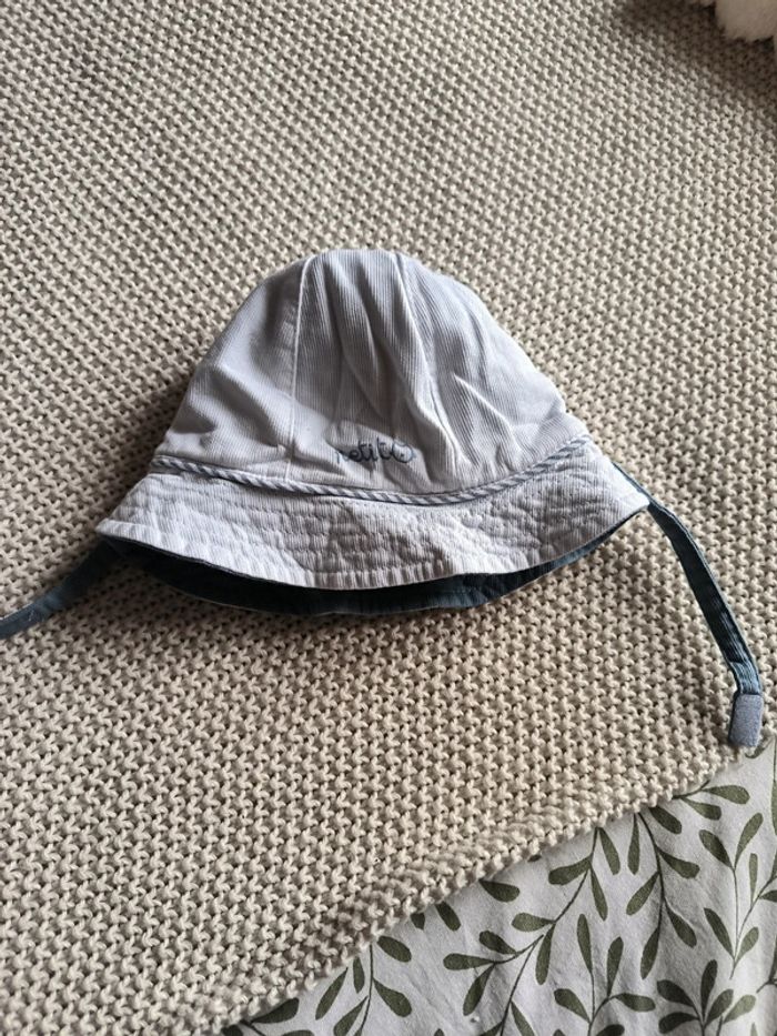 Chapeau bébé obaibi de chez Okaïdi 3 6 mois un côté blanc un côté bleu été #coxynhell6moisgarçon