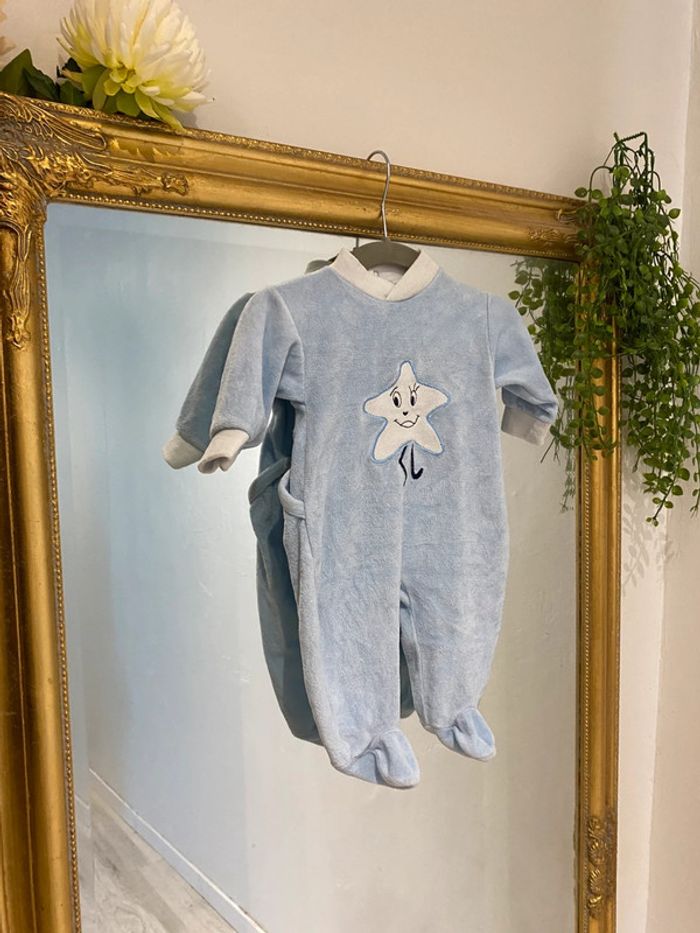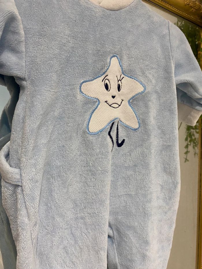 Pyjama bleu ciel et blanc motif étoile ouverture sur l’arrière sans marque #dixoctobre223mois