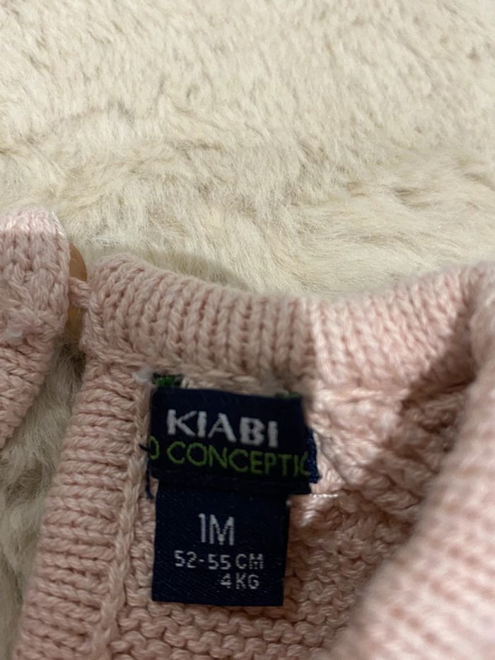 Ce pull rose à effet laine de la marque Kiabi est parfait pour garder votre bébé au chaud. Avec son col Claudine, il ajoute une touche d'élégance à n'importe quelle tenue. Sa couleur rose pâle apporte une douceur supplémentaire. Disponible en taille 1 mois.