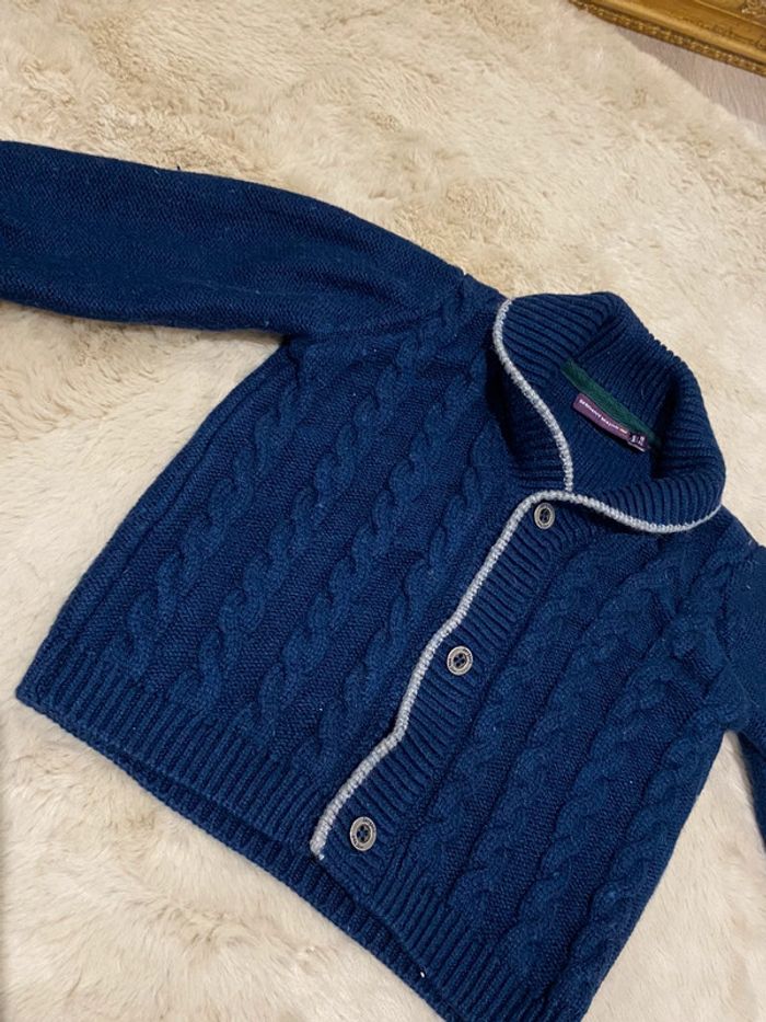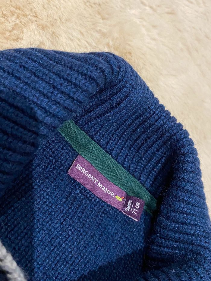 Ce gilet bleu marine taille 9 mois est parfait pour votre petit. Avec des boutons sur le devant et un col sophistiqué, il ajoutera une touche de style à n'importe quelle tenue. La couture grise apporte une touche de modernité et de classe. De la marque Sergent Major.