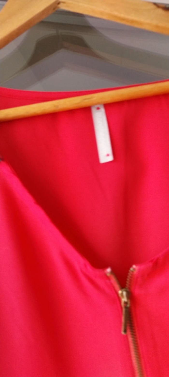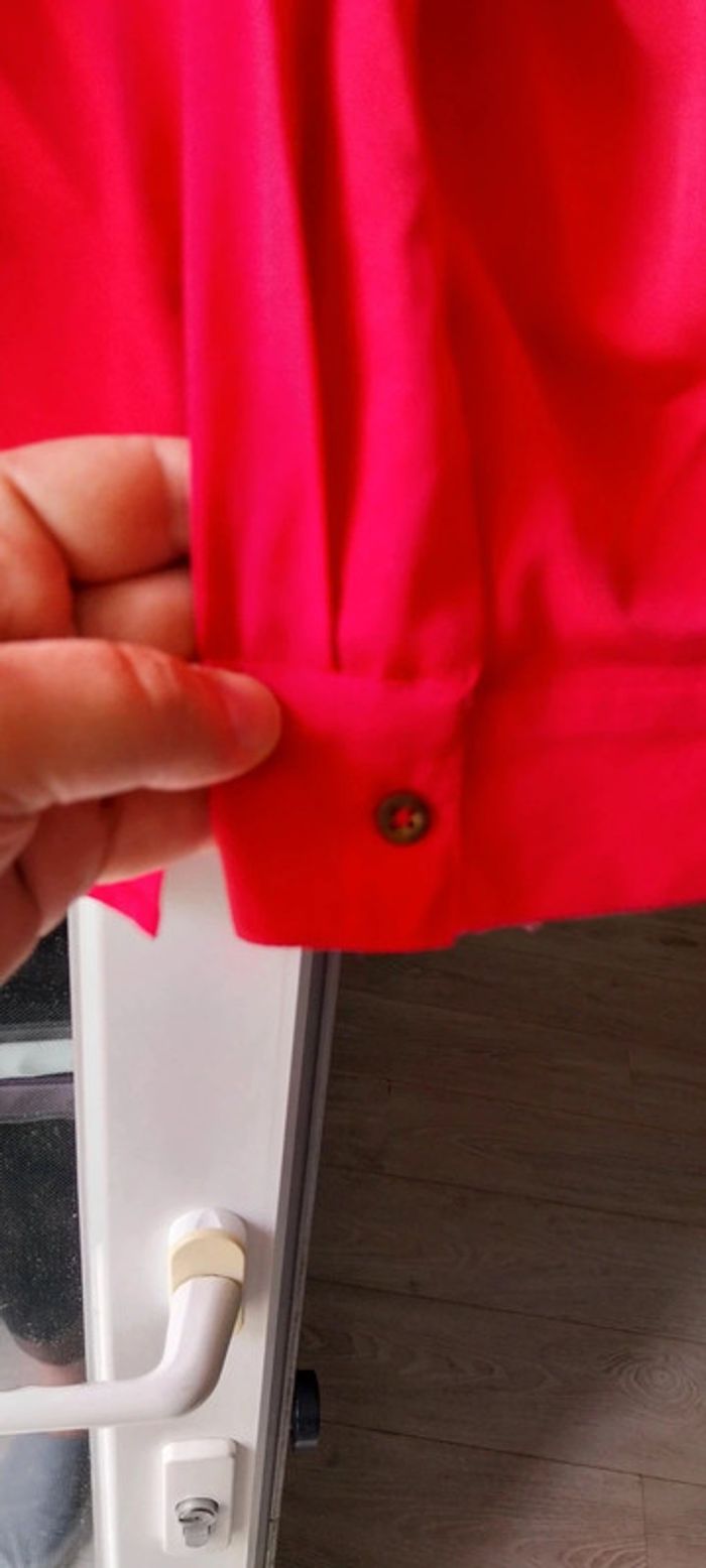 Blouse blancheporte rose fushia avec dentelles noire en haut et boutons aux manches + fermeture eclair au décolleté. Étiquette coupée mais correspond à un 48. 59cm d'aisselle à aisselle.