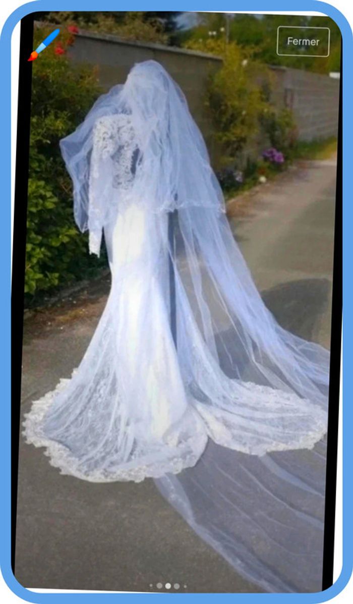Magnifique robe de mariée avec le voile blanche broder de avec perle voile long taille S