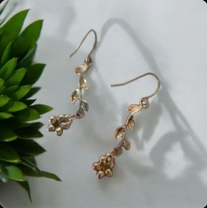 Boucles d'oreilles pendentif fleurs et feuilles en 2 couleurs - photo numéro 3