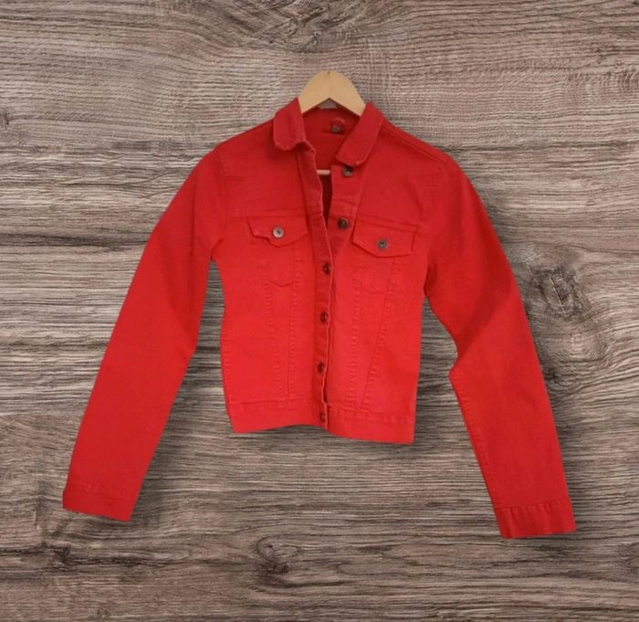 Veste rouge en jeans taille 36.