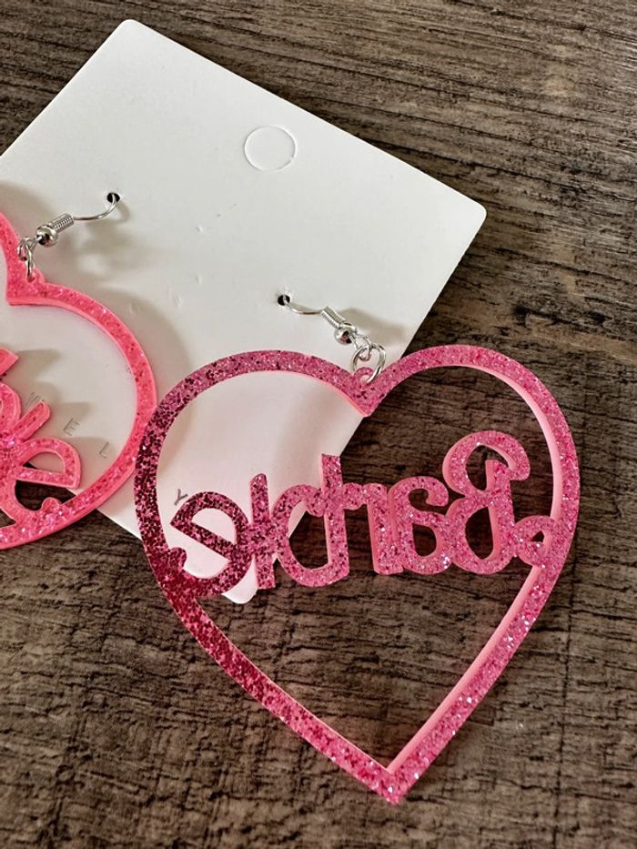Boucles d’oreilles fantaisie rose neuves (jamais portées). A peu près 60 mm de largeur et 57 mm de hauteur.