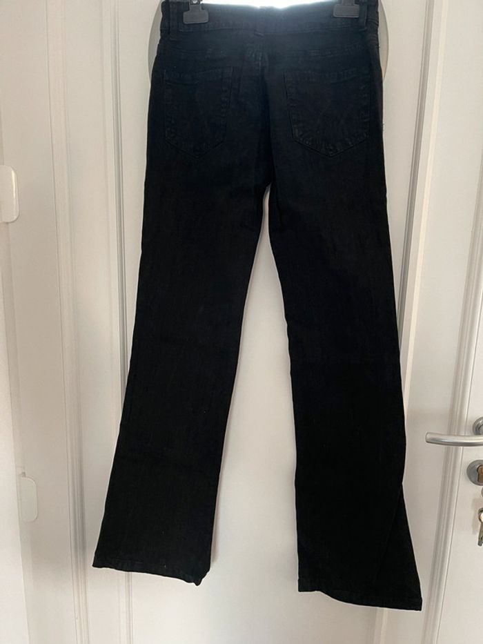 Jeans noir T.34 en bon état. A laver et à repasser car stocké dans un carton.