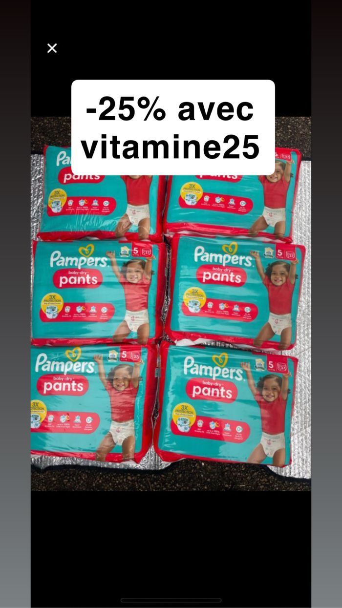 Le lot de six paquets de couches Pampers baby dry pants taille 5
