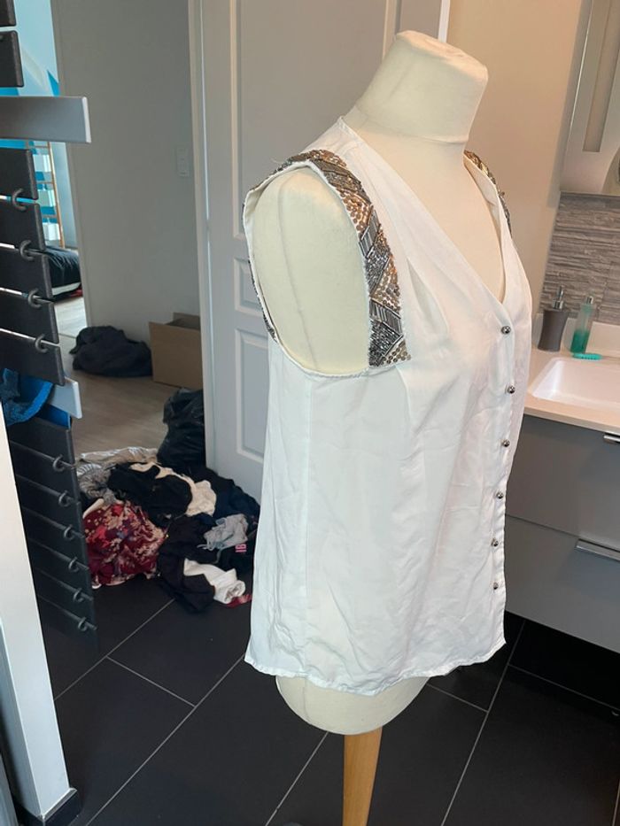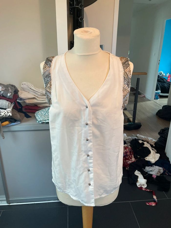 Top sans manches Vero moda taille M Écru, sequins aux manches #picoune22femme38