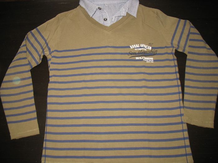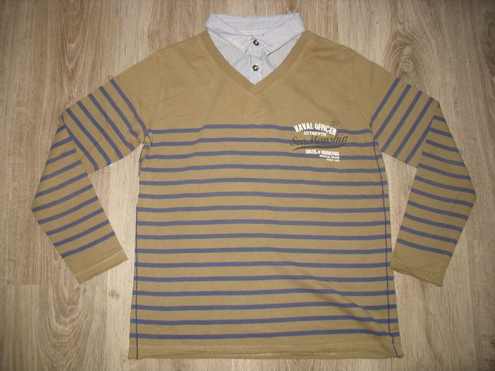 POLO ML KAKI RAYÉ BLEU GARÇON "CAPTAIN TORTUE" - 10 ANS - n°03 Polo à manches longues kaki à rayures bleues - Col effet chemise en dessous - Écriture poitrine et dos - Matière : 100% coton. Article d’occasion en très bon état - Sans trou - Ni tache - Lavé et repassé pour la vente. Possibilité d'envoyer d'autres photos sur simple demande. Allez voir mes autres ventes, je vide les placards. Beaucoup de vêtements de marque et beaucoup de jouets. Maison non-fumeur - Sans animaux. Réduction lot activée. Remise en mains propres ou possibilité d'envoi au tarif en vigueur à votre charge. Retour Refusé. Pour tout renseignement, n'hésitez pas à me contacter, je répondrai volontiers à vos questions. Réponse Assurée. Pour Consulter mes autres annonces tapez Nathg2210.