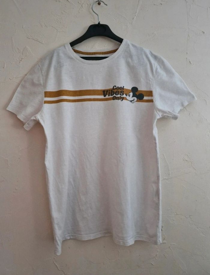 #melany71_taillem T-shirt blanc Disney avec design "Cool Vibes Only" et Mickey Mouse sur le devant. Coupe droite, très confortable, parfait pour un look décontracté et stylé. Taille : M État : Très bon état, peu porté, aucun défaut à signaler. Marque : Disney Matière : Coton (majoritairement) Couleurs : Blanc avec bande jaune moutarde et imprimé noir Envoi rapide et soigné 📦 N’hésite pas si tu as des questions !