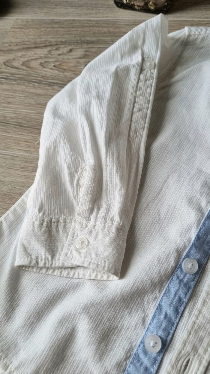 Porté une fois Chemise blanche en très bon état. S'attache devant par des boutons. Pas de défauts à signaler.