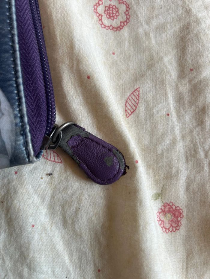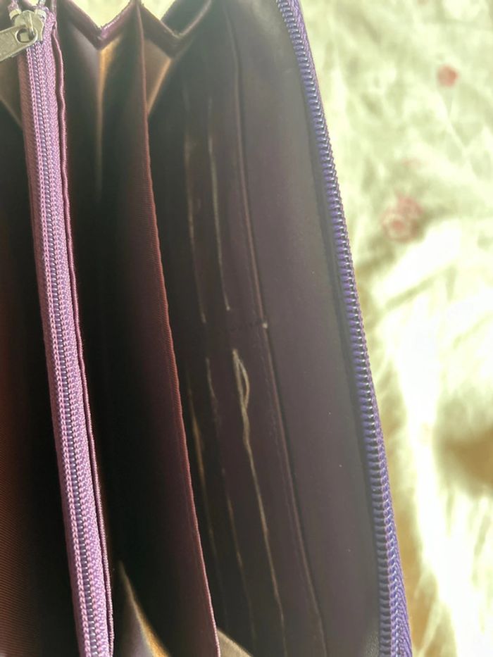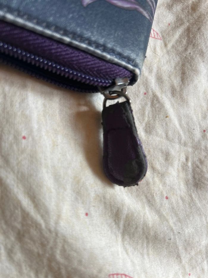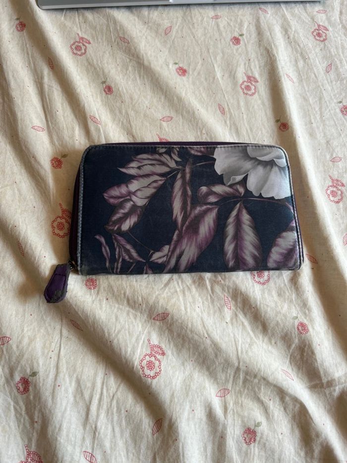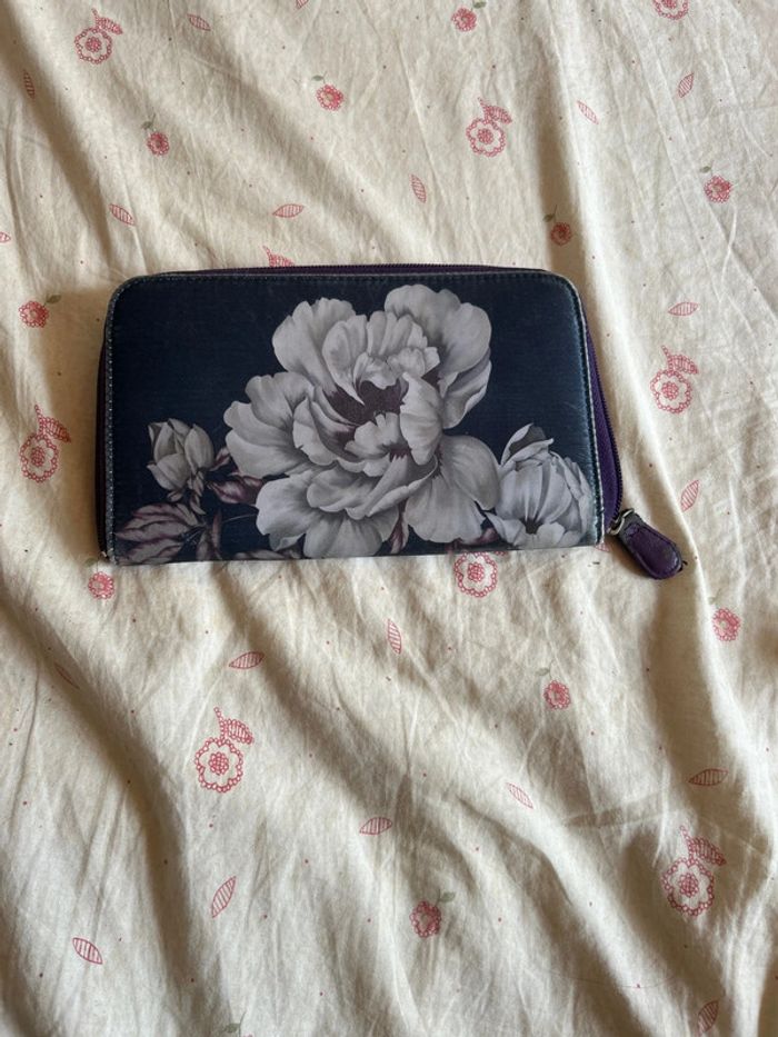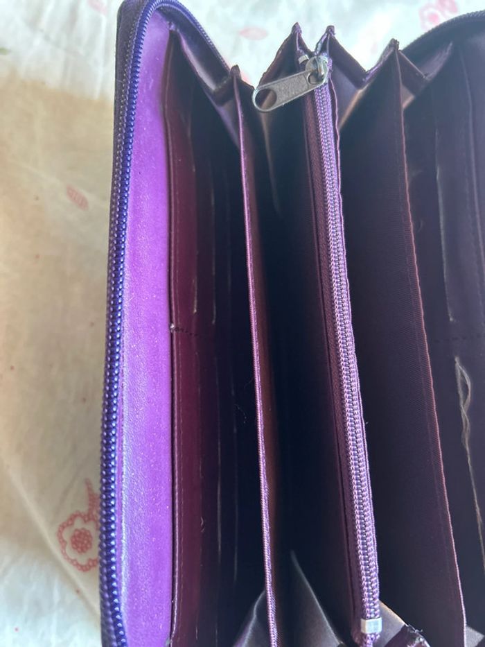 Porte monnaie violet à fleur Un peux usée Voir défaut sur les photos