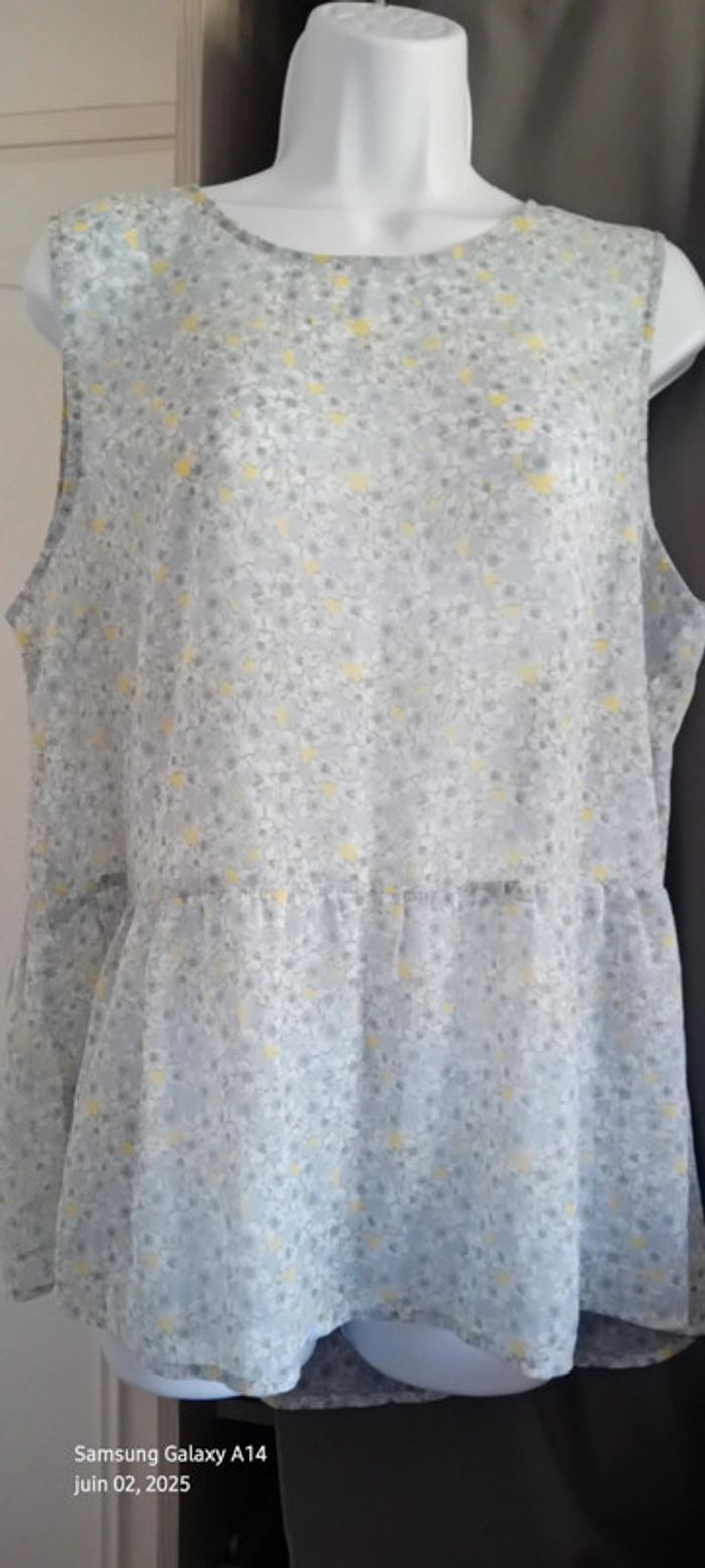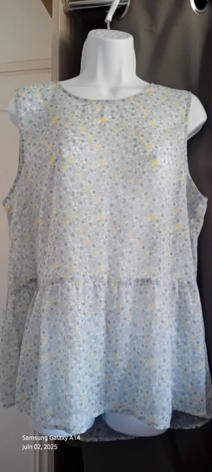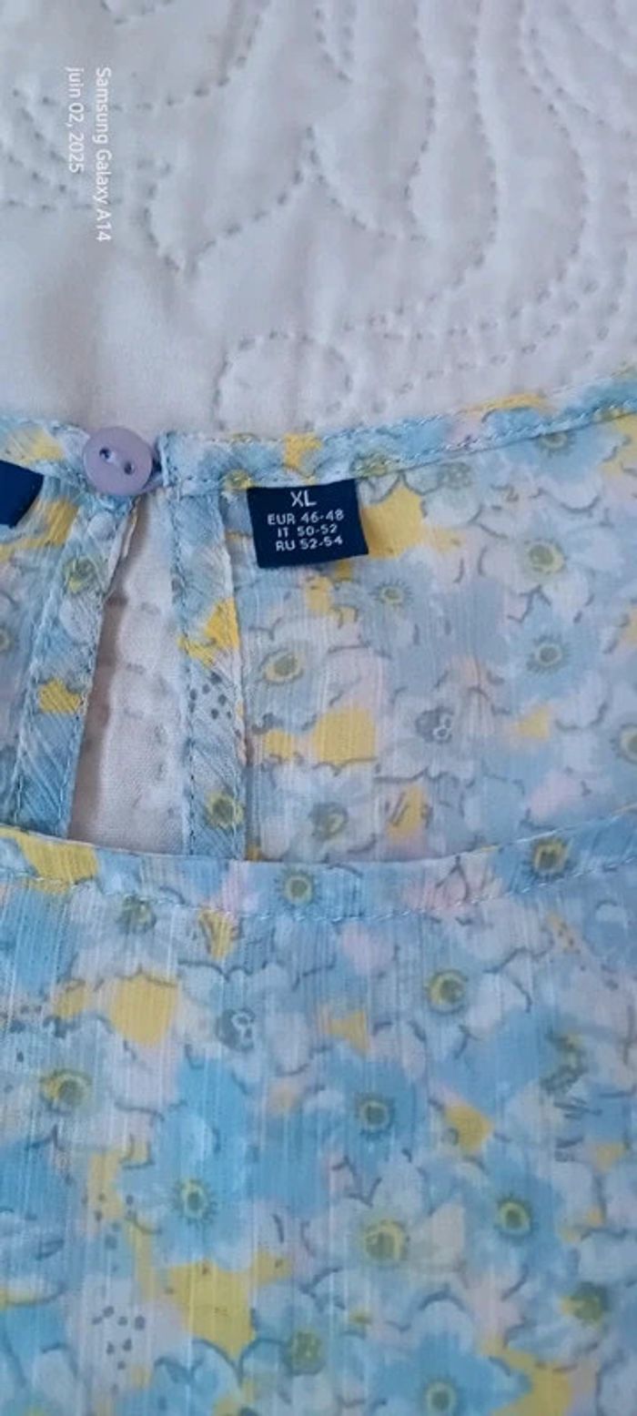 Tunique débardeur en voile motif fleurs bleu jaune femme XL kiabi - photo numéro 14