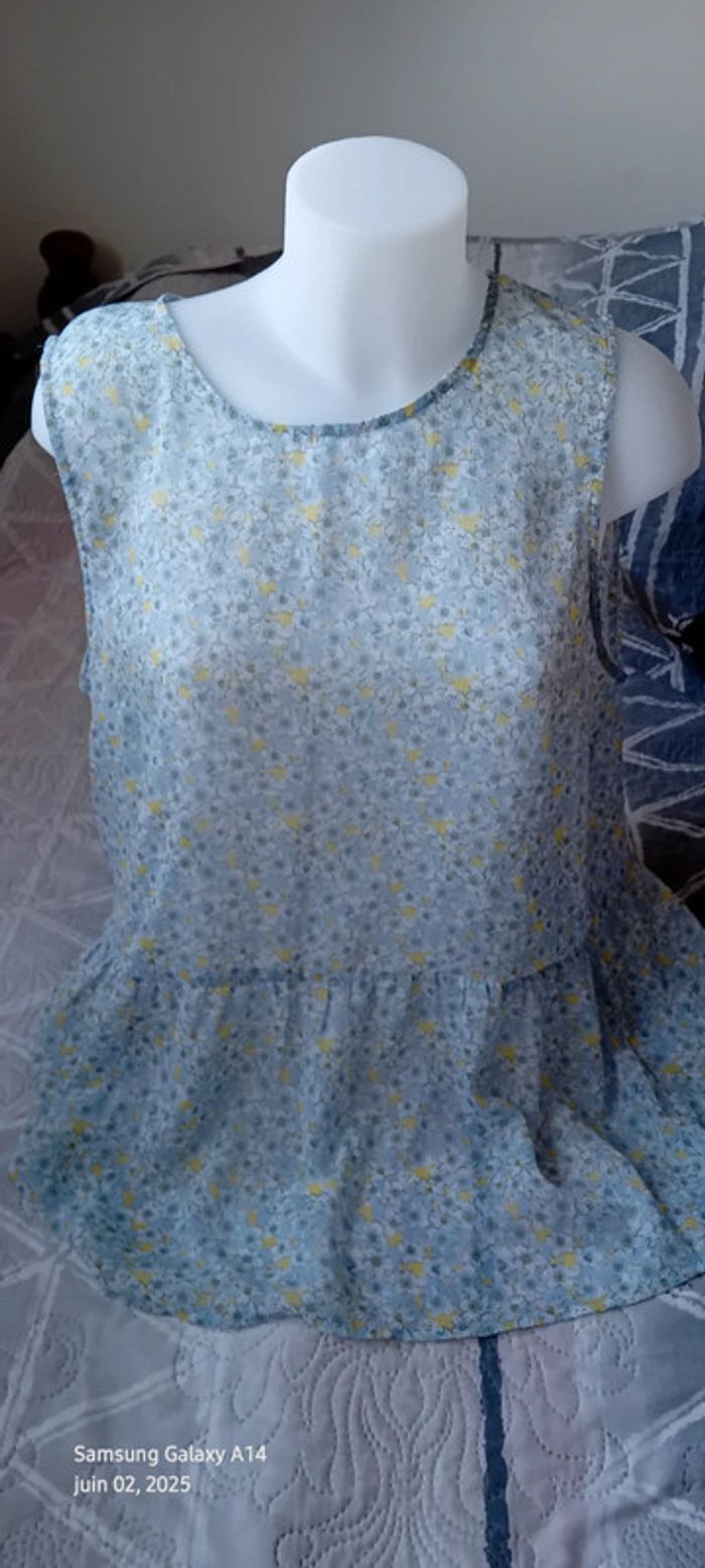 Tunique débardeur en voile motif fleurs bleu jaune femme XL kiabi - photo numéro 9