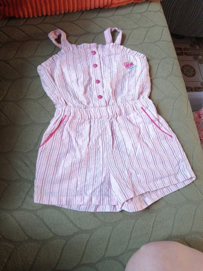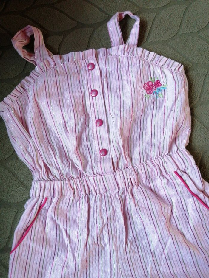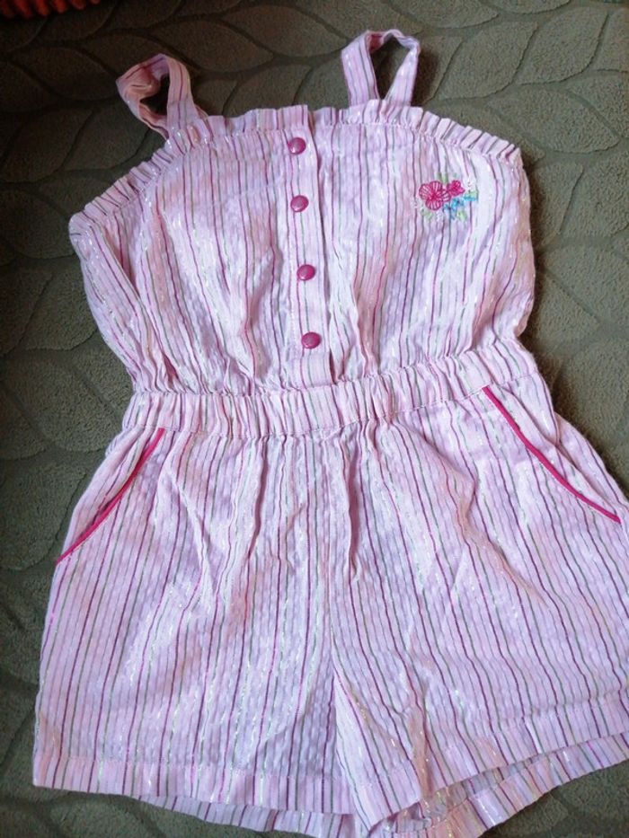 Jolie combi short rayée, Rose avec filaments argentés, Comme neuve.