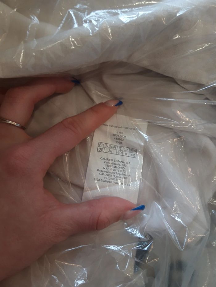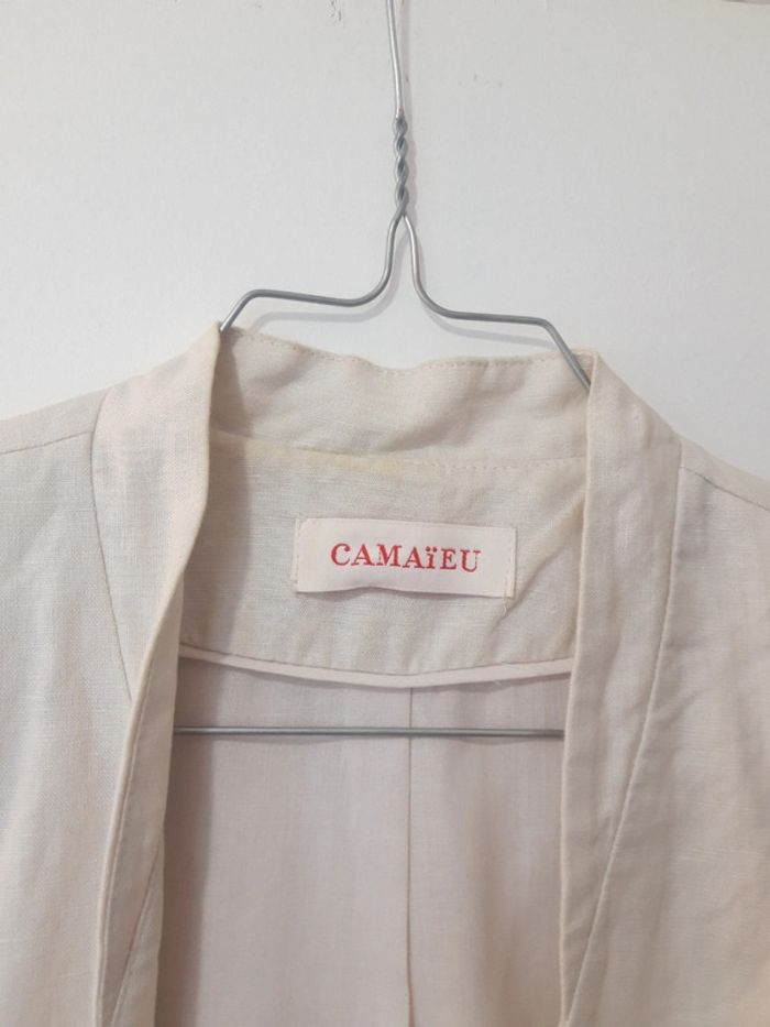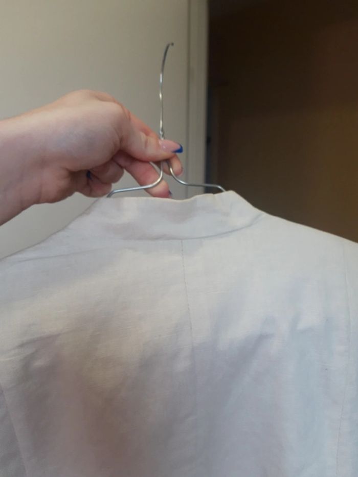 Légèrement jauni au col du au lieu de rangement voir les photos Elle n'a été porté qu'une fois donc reste en tres bon etat Camaïeu Taille 36