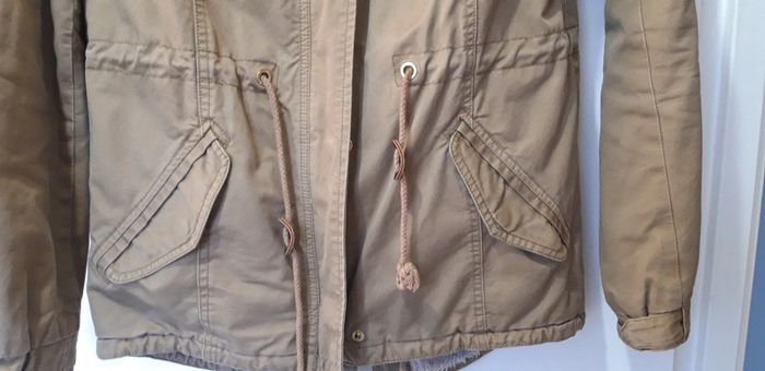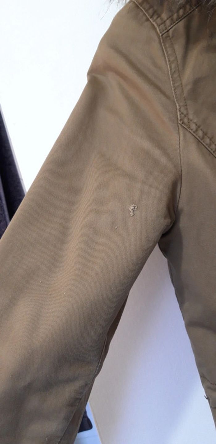 Taille 36 H&M Petite déchirure au niveau du bras (photo) a part ça pas de défaut, le manteau a été recousu une fois à l'arrière ( photo)