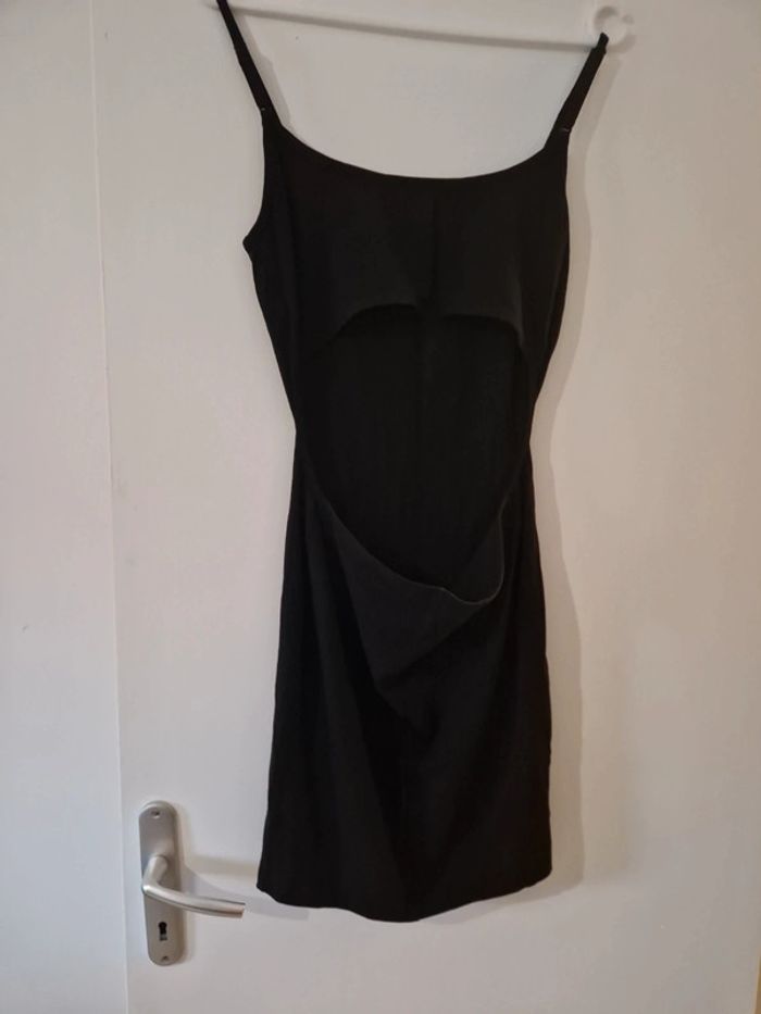 Robe moulante noire avec dos ouvert. Taille 38, très bon état.