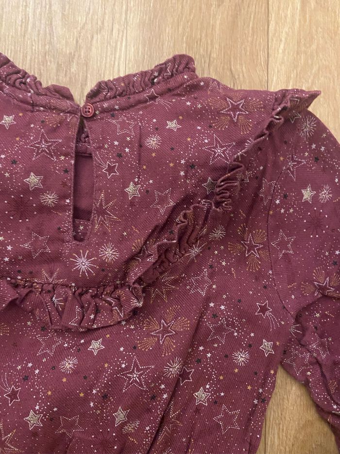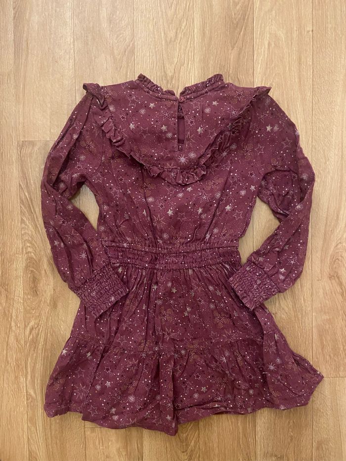 Robe rose framboise imprimé étoiles Élastique à la taille Encolure avec volants