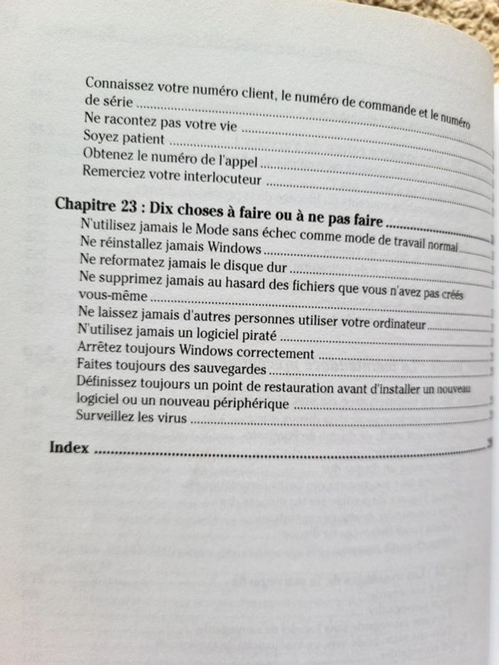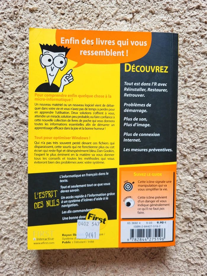 ⭐️ Nombreux livres dans mon dressing réductions sur les lots activées ✨️ 📚 Livre "Dépanner et optimiser Windows pour les Nuls" de Dan Gookin Édition First Interactive 📖 Très bon état 📍Idéal pour utilisateurs débutants ou autodidactes qui veulent garder leur ordinateur en bon état sans être expert en informatique 📕 Un guide simple et accessible pour : Résoudre les bugs et plantages fréquents, Optimiser la vitesse de votre PC, Nettoyer, organiser et sécuriser votre système Windows