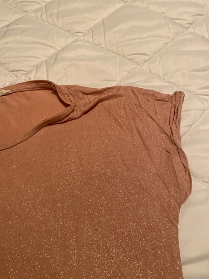 T shirt rose pailletée femme cache cache neuf taille s - photo numéro 2