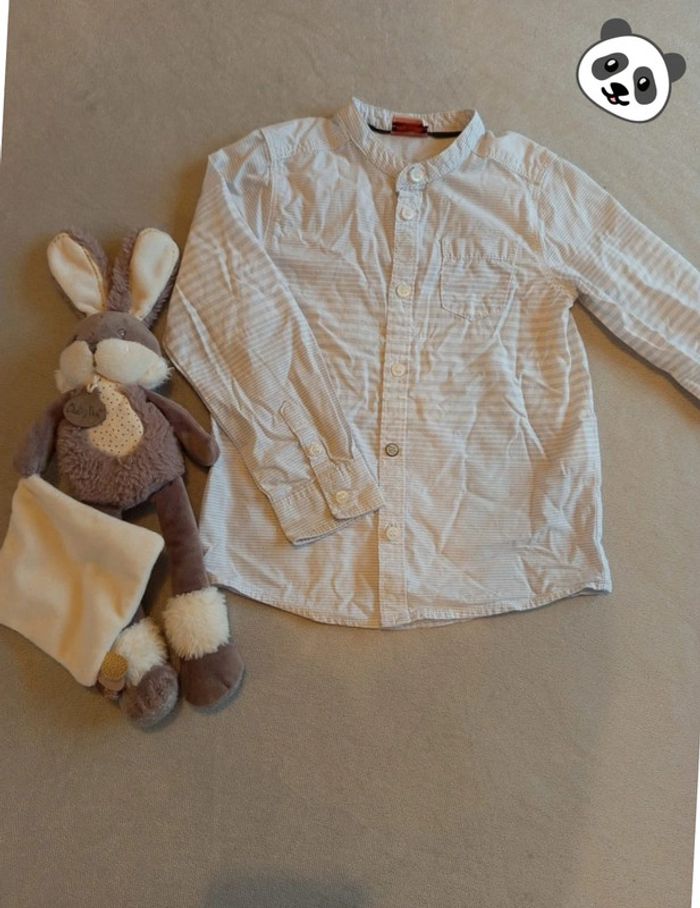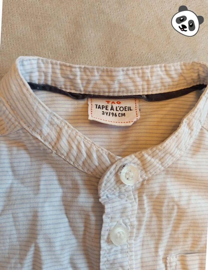 Chemise blanche rayée en très bon état, 100% coton Tape à l'oeil taille 3 ans Pour mes autres articles même taille : #36moisco14 #chemise #tao #mancheslongues #garçon