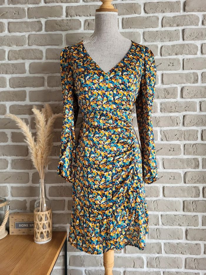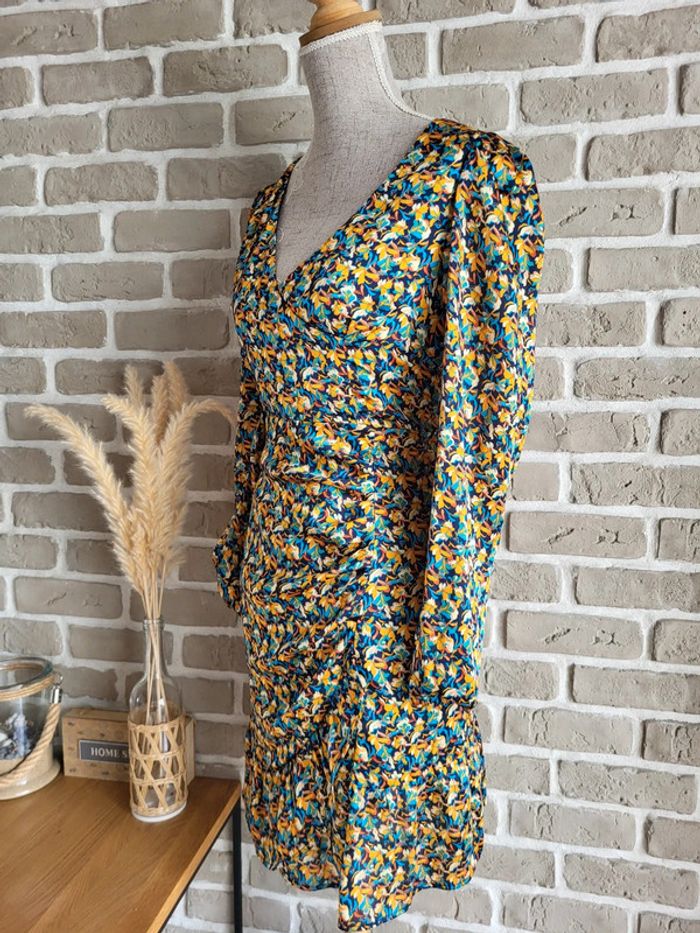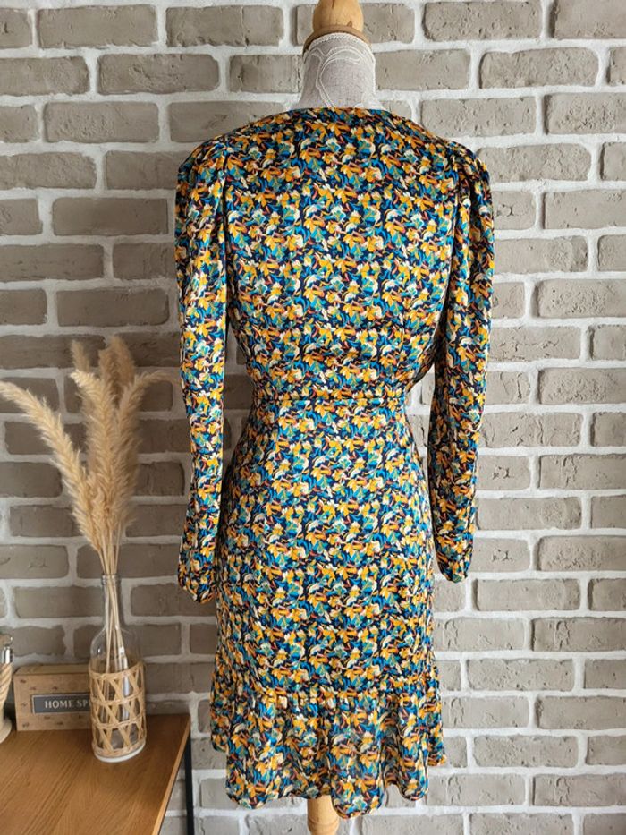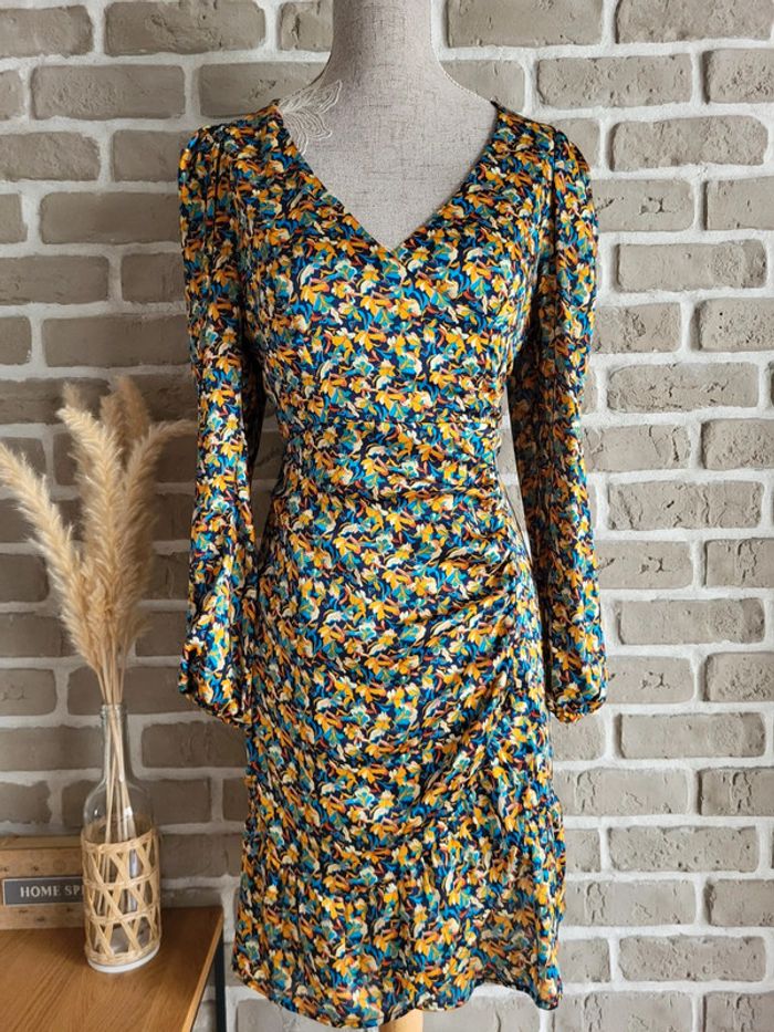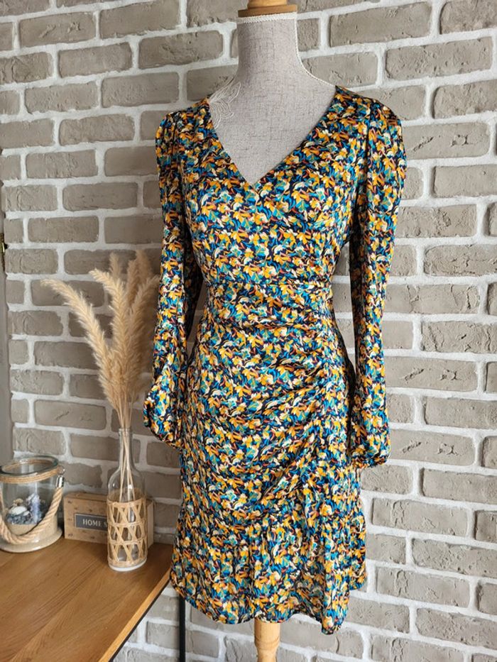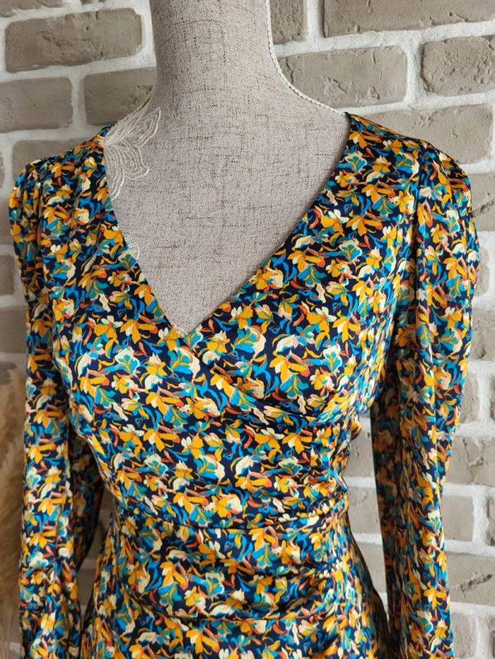 💝 Bénéficiez d'une réduction en créant lot dans mon dressing 🛍️ 🌸 Magnifique robe Promod comme neuve, portée 2 fois 🎀 Tissu fluide, léger et légèrement satinée imprimé fleuri dans les tons bleu et jaune oranger Entièrement doublé 🪷Coupe flatteuse avec taille marquée Décolleté croisé façon cache-cœur, fronces dans la partie jupe avec base volantée Manches longues bouffantes aux épaules et élastiquées aux poignets Ouverture par un zip invisible sur le côté 🍥 Taille S 36, qui peut également convenir à du XS 34 Longueur : 85 cm 🩷 Cette robe a un petit air rétro très chic qui pourra convenir à une occasion particulière ou au quotidien Son motif floral donne un air romantique tout en restant dynamique