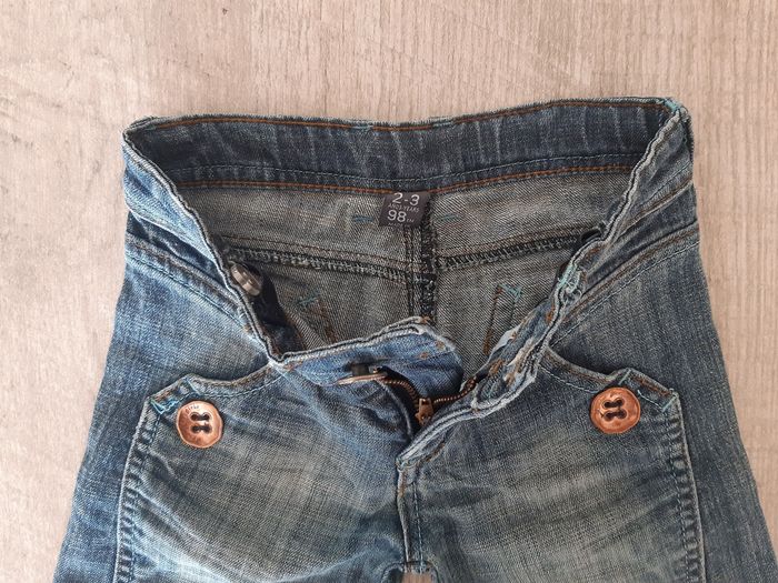 Taille réglable arrive au dessus du genou Sur l'étiquette 2-3ans 98cm Peu porté comme neuf Détails "bijoux sur la poche arrière