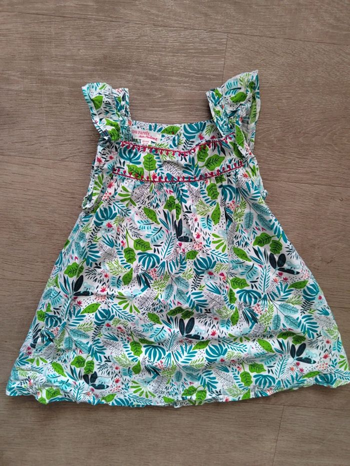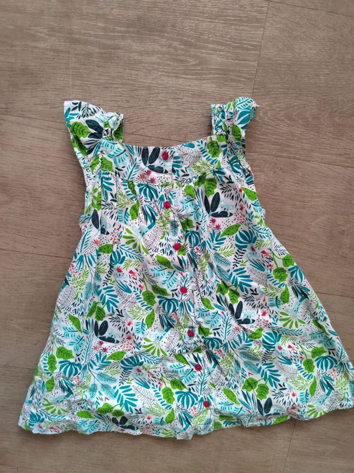 Très jolie robe motifs feuillage vert Fermeture boutons à l'arrière