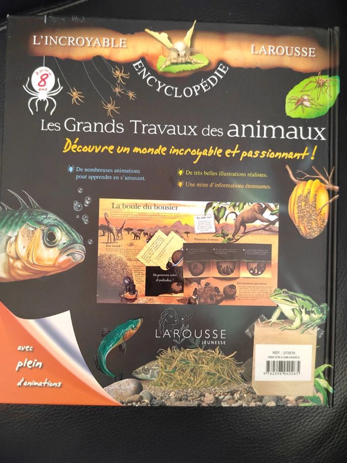 Une encyclopédie époustouflante qui regorge d'informations, d'illustrations et d'animations ! Grâce à ses nombreuses animations (rabats, volets, livrets, dépliants), cet ouvrage permettra aux enfants âgés de 8 à 12 ans de découvrir les incroyables constructions faites par les animaux. Un petit coin abîmé
